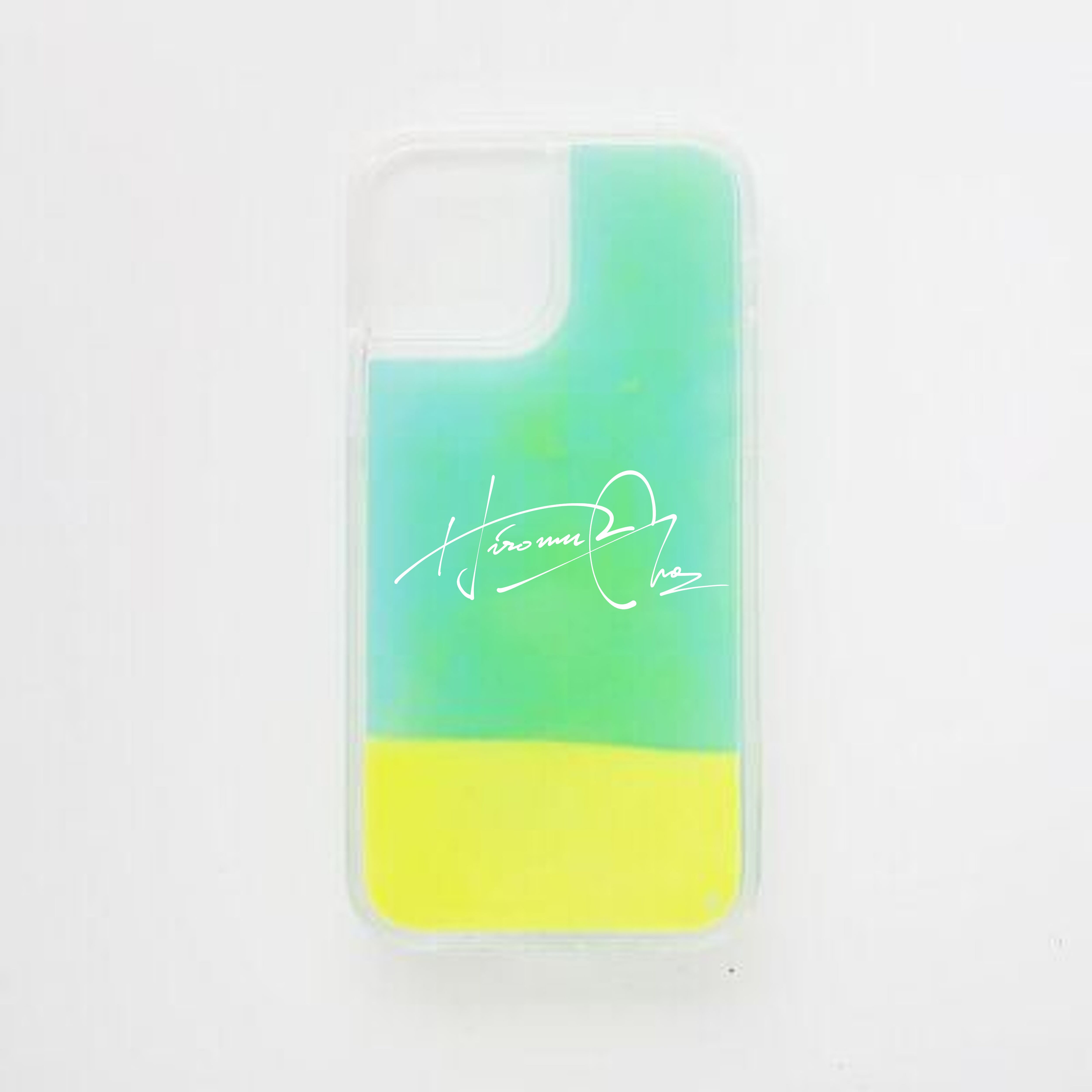 淡い発光で暗所でほのかに光るサインロゴ入りスマホケース。(イエローグリーン)