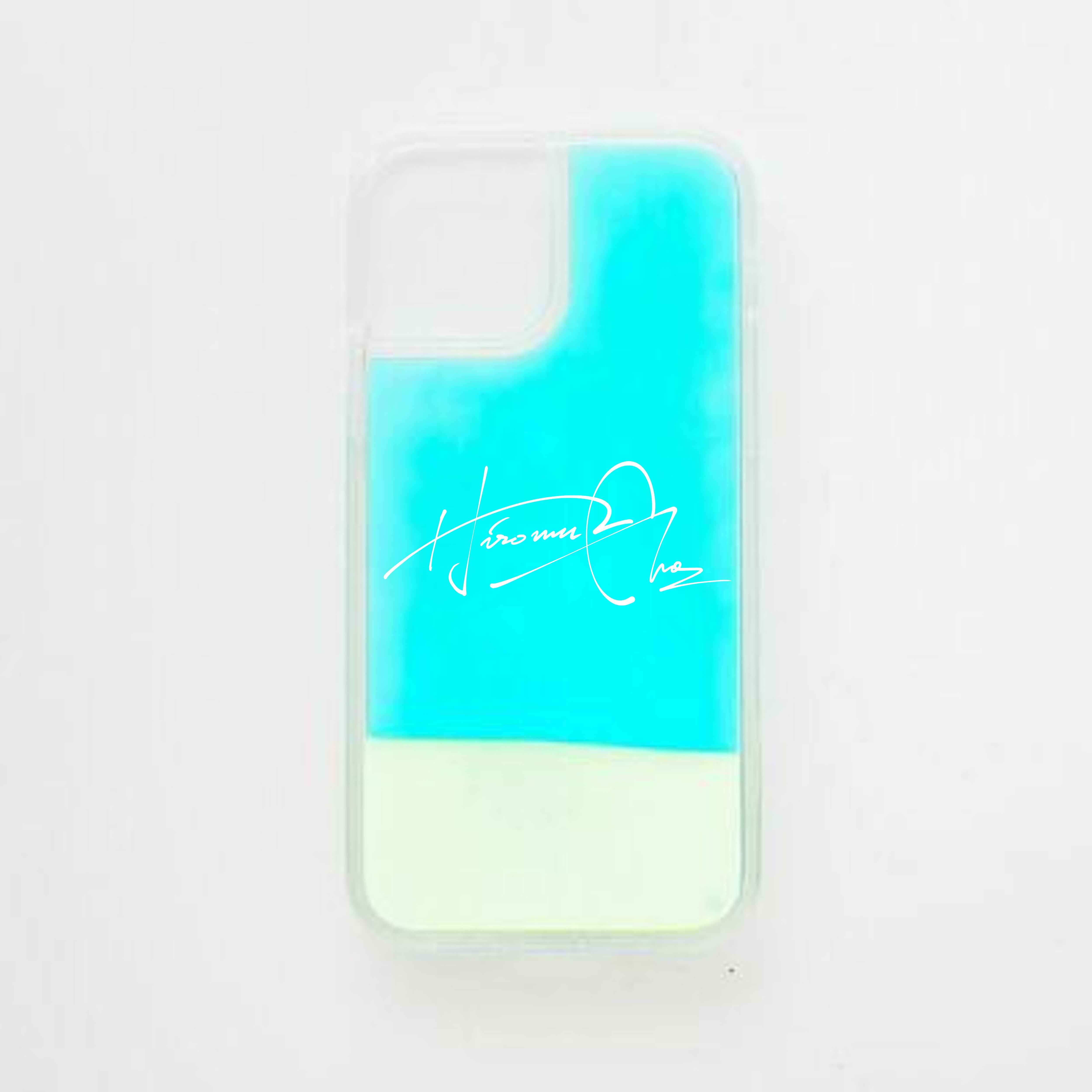 淡い発光で暗所でほのかに光るサインロゴ入りスマホケース。(ライトブルーホワイト)